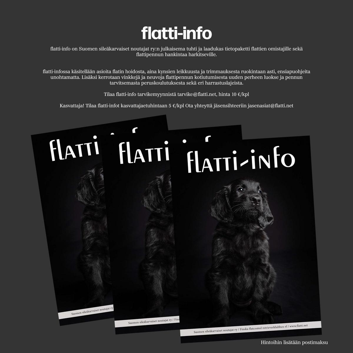 flatti-info on tuhti tietopaketti flattien omistajille ja flattipennun hankintaa harkitseville. Tilaa flatti-info suoraan jäsensihteeriltä osoitteesta jasenasiat (ä) flatti.net.